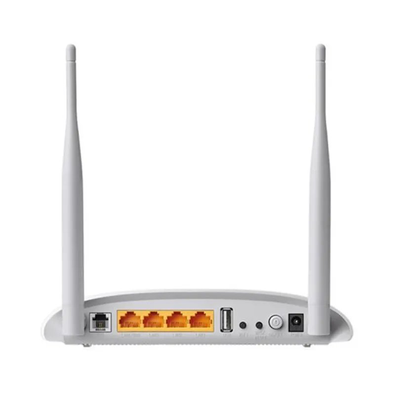 این مودم ADSL زیبا از 4 پورت LAN از نوع 10/100 مگابیت برثانیه به همراه یک پورت تلفن RJ11 برخوردار است. همچنین یک پورت USB 2.0 نیز در این مودم تعبیه شده تا بتوانید جهت برقراری ارتباط با سایر تجهیزات نیز از آن استفاده کنید. همچنین 2 آنتن خارجی ثابت نیز جهت انتقال و اشتراک سیگنال های اینترنت در محیط تعبیه شده و قدرت انتقال آنها برابر با 5 دیسیبل است.